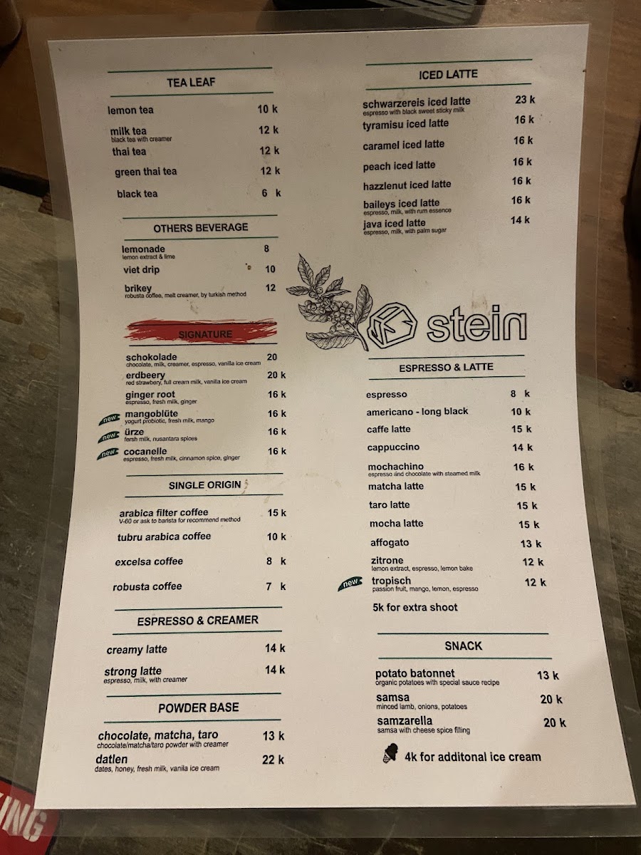 STEIN Coffee Menu
